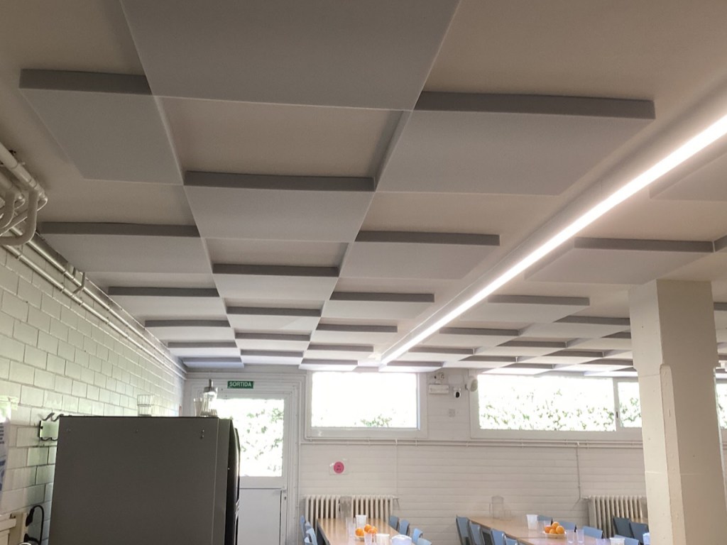 Al menjador abans hi havia molt de soroll, ja que al menjar tanta gent alhora hi havia molta disbauxa i sovint era insoportable. Ara gràcies al nou canvi, que consisteix en unes plaques d’esponja flexible situades al sostre, el soroll és molt més lleuger. Per saber amb claredat el que se sentia al menjador i el canvi que ha provocat aquest nou projecte hem parlat amb la Maribel, l’encarregada del menjador. “Hi havia molt de soroll ja que s’escoltava parlar a tothom i els coberts, ja que teníen les cubiteres de metall, s’escoltaven molt, però ara també les hem canviat per uns de plàstic perquè així no soni tant.” Això ens ha dit la Maribel, la qual està molt contenta pel canvi.